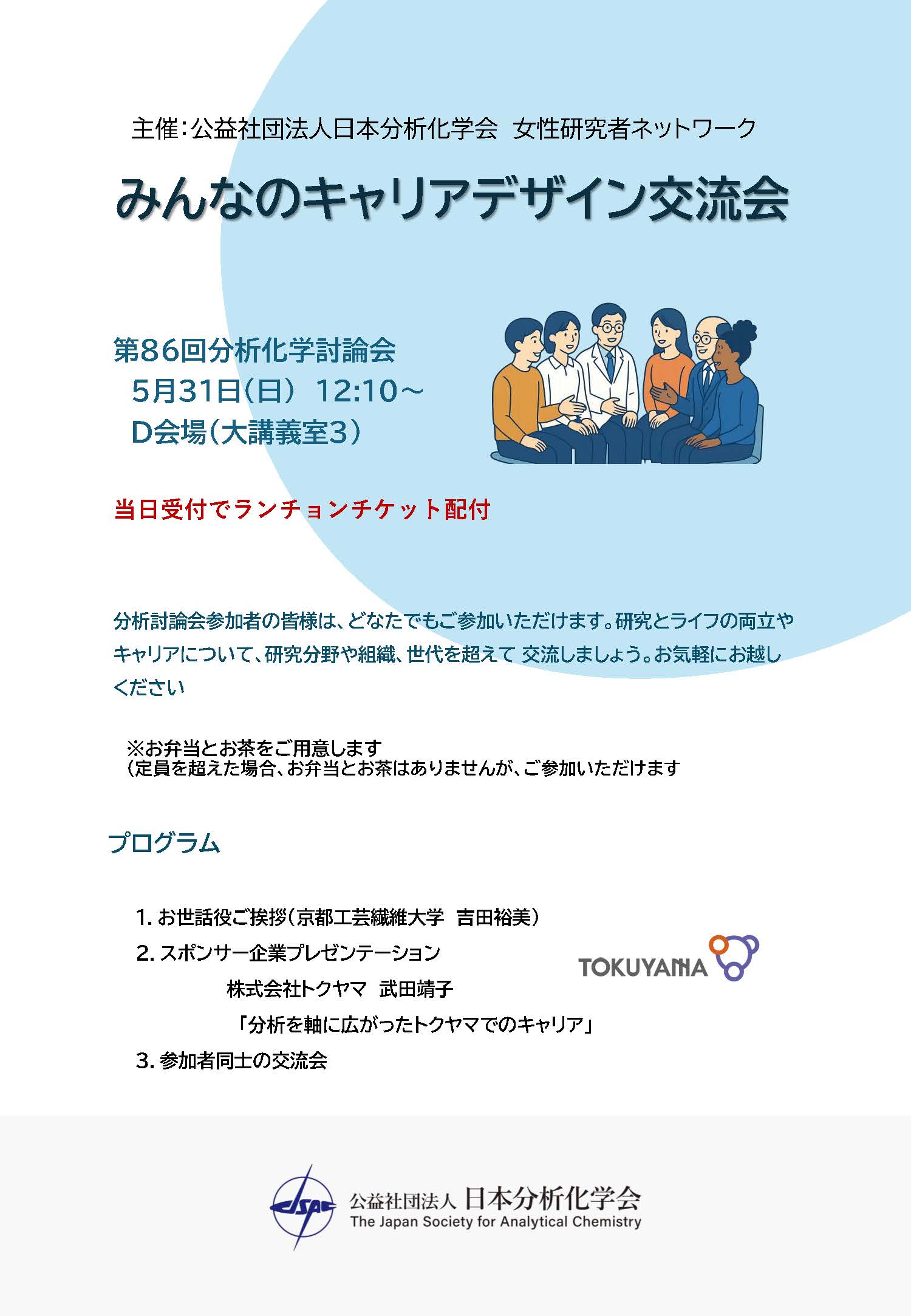 2026年5月31日(日)第86回分析化学討論会にて,「みんなのキャリアデザイン交流会」を行います.